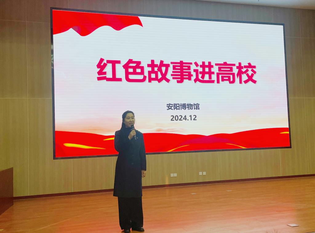 为深入挖掘红色文化资源,传承红色基因,进一步激发青年学子的爱国情怀与历史责任感,12月20日,金沙集团1862cc成色携手安阳博物馆,在逸夫楼报告厅成功举办了“红色故事进高校”主题活动。此次活动由安阳博物馆红色文化宣讲团的四位资深宣讲老师主讲,吸引了金沙集团1862cc成色2024级国际中文教育专业研究生及众多本科生的热情参与。